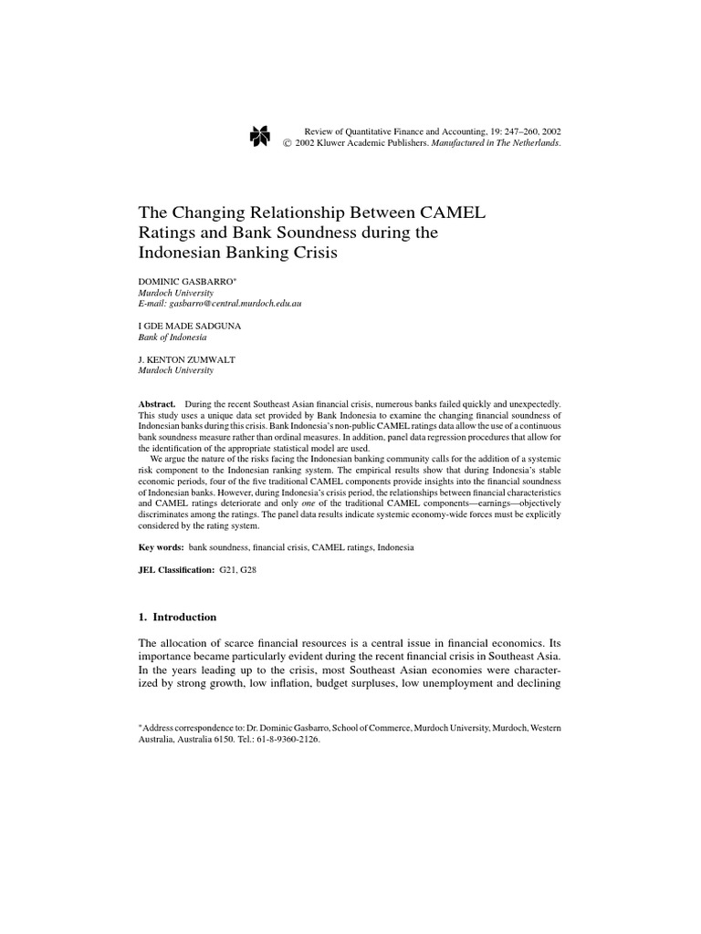 The camel methodology was originally adopted by north american bank regulators to evaluate the financial and managerial soundness of u.s. Those categories as gunsel, n., (2005) &. In some countries regulators allow a longer period, typically 180 days. A.capital adequacyb.dollar value of fixed assetsc.asset qualityd.e.sensitivity to financial market conditionsans:b earnings 2. The camel rating is based on 24 financial ratios that help determine the safety ratings of banks, savings institutions, and credit unions. Camels rating model is the informal name for a supervisory rating system developed by u.s. In this rating system, the officers rate the banks on a scale from 1 to 5, where 1 is the best and 5 is the worst. The formal name is uniform financial rating system. Camels ratings form the backbone of bank regulation and supervision. A bank's camels rating is directly known only by the bank's senior management and the. Of that category to define camels system in any group of ratios. Which of the following is not a specific criterion the fdic uses to monitor banks? .banks using camel ratings 1.