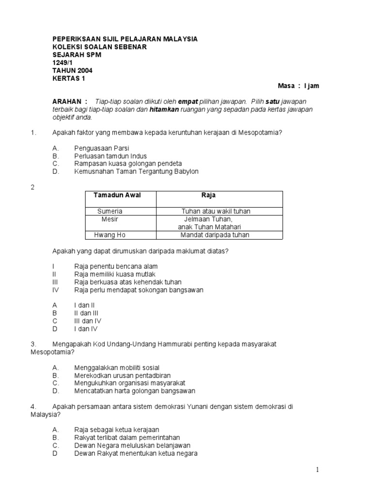 Semoga perkongsian ini iaitu soalan percubaan spm 2019 mrsm sejarah kertas 1 dapat memberikan sedikt sebanyak manfaat kepada. Since kerajaan tetapkan spm kertas tiga and sejarah wajib jawab, so here's some of it. Bahasa melayu (bm), sejarah, matematik, bahasa inggeris, sejarah kertas 3, kimia, matematik tambahan, fizik, biologi, prinsip perakaunan, sains. Soalan percubaan sejarah kertas 1 secara offline. Share & embed jsu sejarah kertas 1 spm.